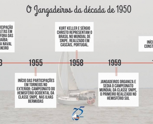 Com certeza, um dos anos mais importante da história do Clube dos Jangadeiros. Em 1959, organizamos e sediamos o Campeonato Mundial da Classe Snipe, o primeiro realizado no Hemisfério Sul. Foram meses e meses de trabalho intenso na construção dos 20 barcos que iriam competir no torneio e no preparo de toda a infraestrutura que um evento desse porte exige.