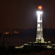Iluminação recém instalada no Farol do Clube, na ponta do mole, também deu mais vida e beleza à replica do histórico Farol do Capão da Marca, instalado em 1849 às margens da Lagoa dos Patos