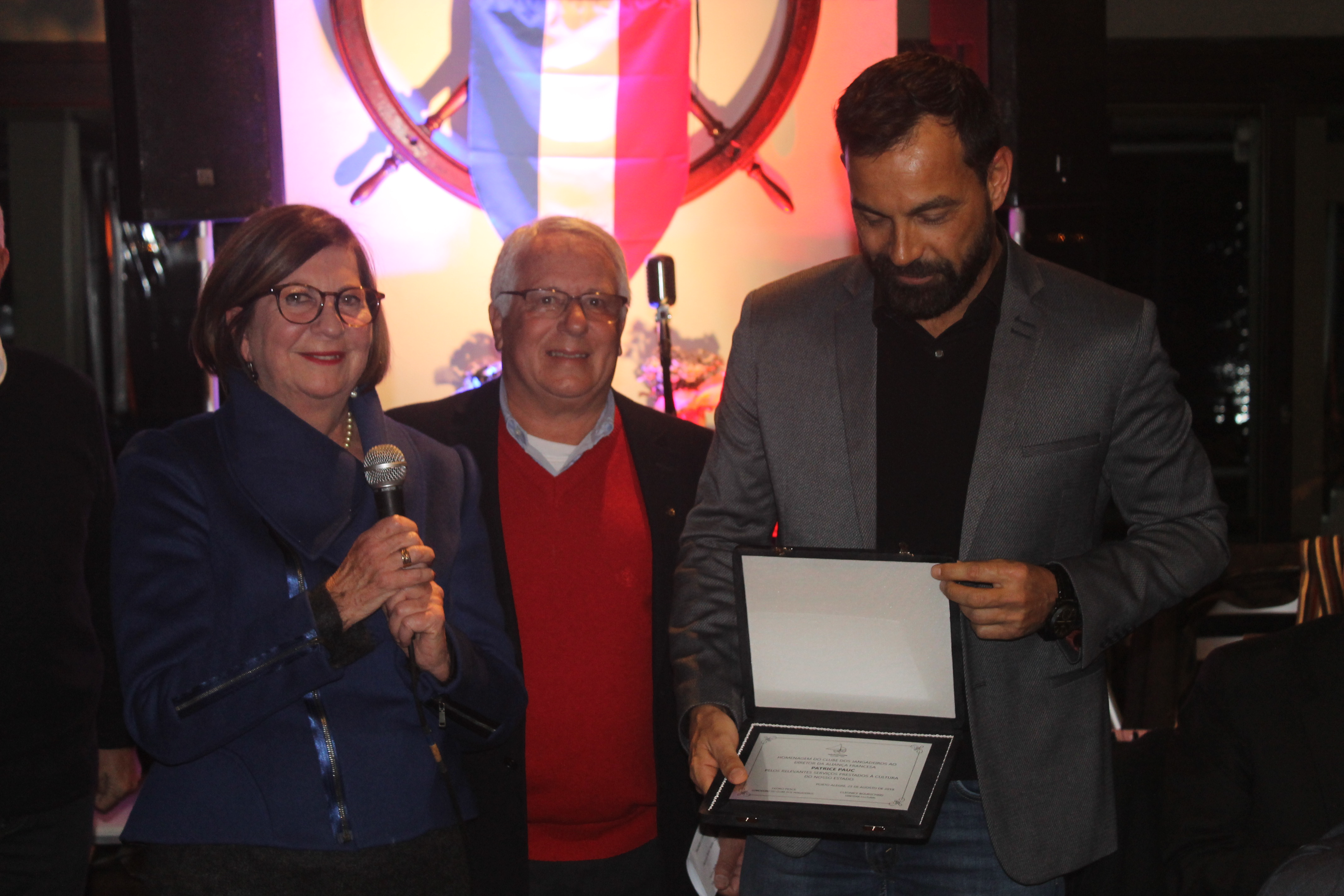 O presidente de honra da Aliança Francesa, José Vicente Torre, e o diretor da entidade, Patrice Pauc, também foram agraciados no encontro. Para Patrice, a ocasião era ainda mais especial, já que em uma semana ele retornará para a França após cinco anos no Brasil.
