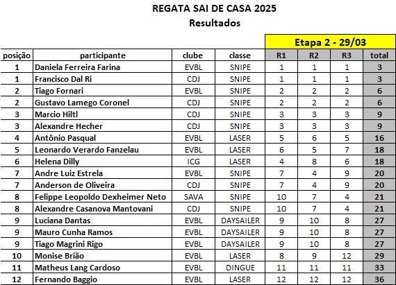Confira os resultados da segunda etapa da Regata Sai de Casa de 2025