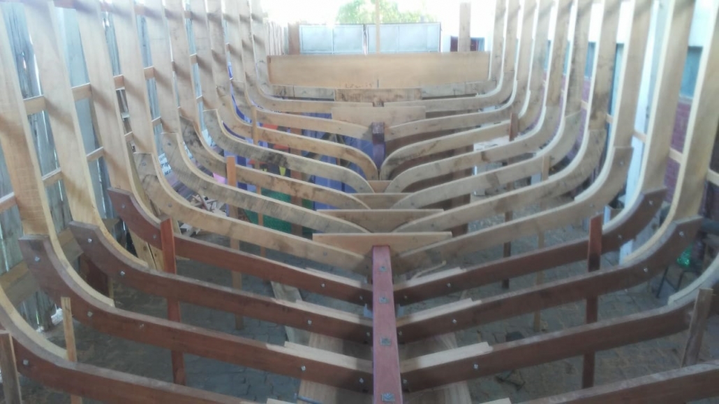 Construção da réplica em tamanho real do barco Seival segue em andamento