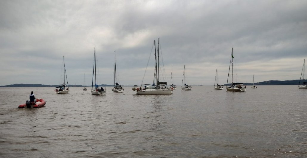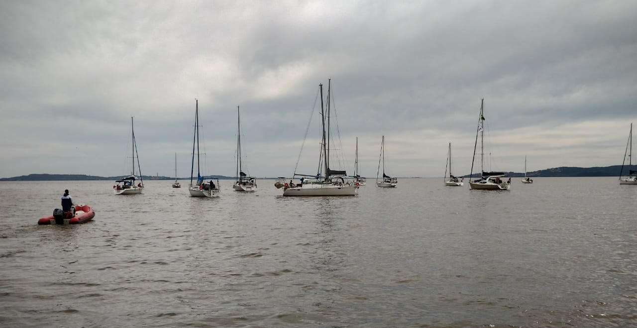 Botes fizeram o desembarque dos cruzeiristas, que ancoraram seus barcos em frente à praia. Churrasco de choripán foi servido e sócios sorteados foram presenteados com o livro de 80 anos do clube, lançado na sexta-feira (12). O Comodoro Pedro Pesce fez a entrega dos presentes.