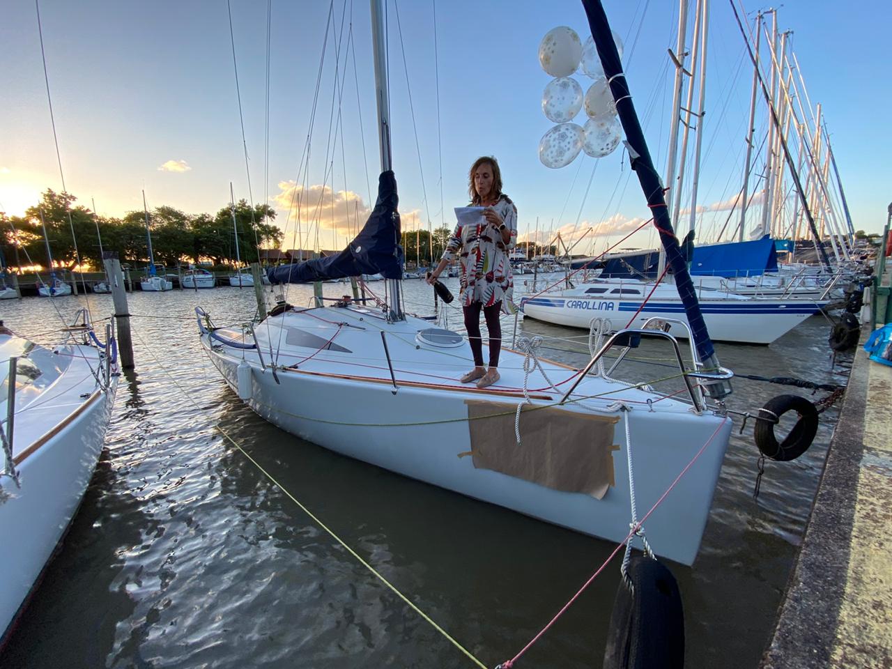 O batismo contou com amigos no trapiche e a associada Thaís Paz é a madrinha do veleiro.