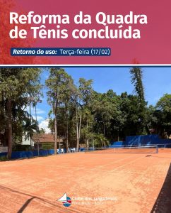 A reforma na quadra de tênis do Jangadeiros foi finalizada nesta semana, antes do prazo estimado. O uso está liberado a partir da próxima terça-feira (17) com o fluxo normal de reservas, pelo site do Clube, também na área do associado.