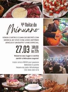 Participe da 4ª Noite do Minuano promovida pelo Bistrô Pimenta Rosa
