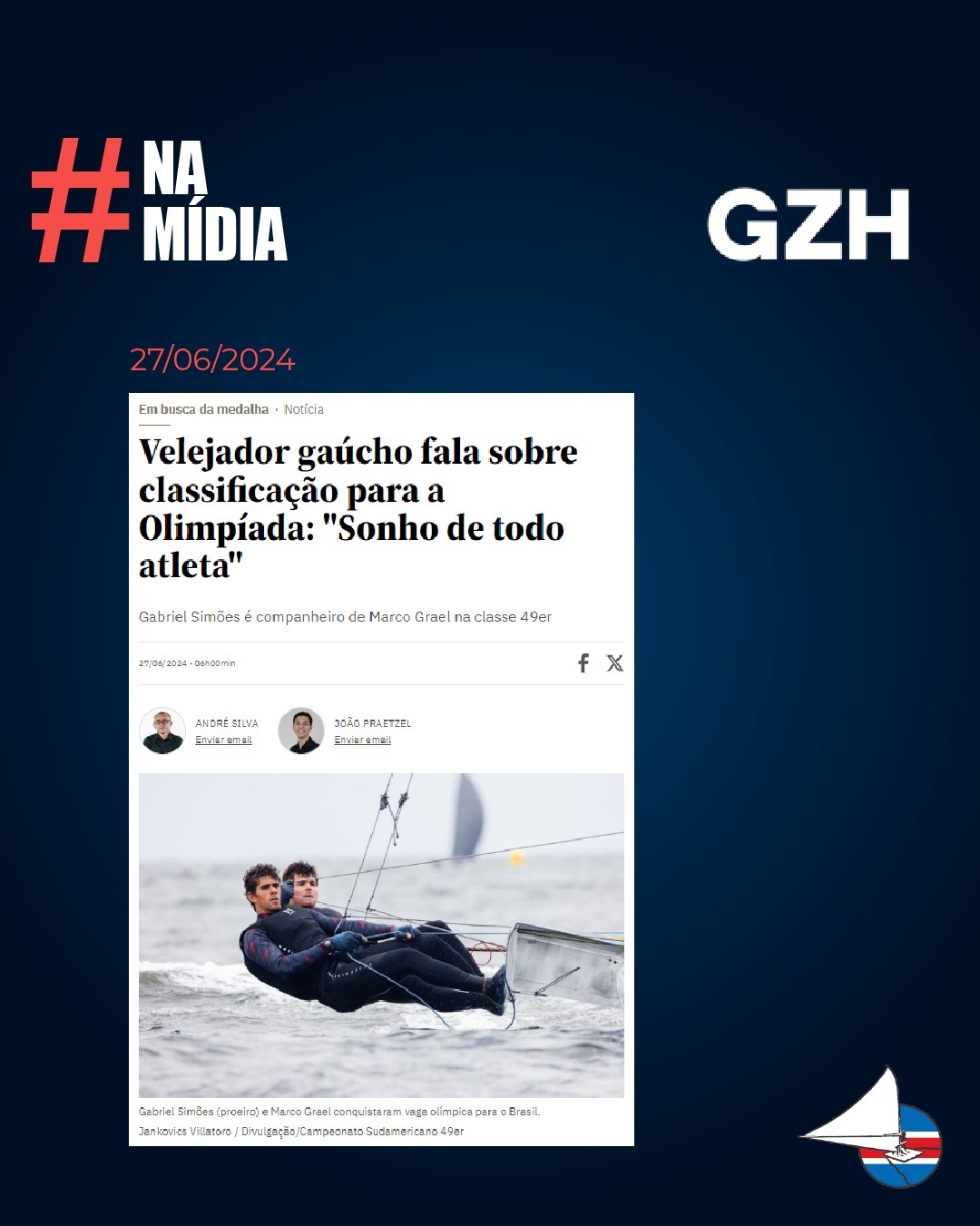 Em GZH, Gabriel Simões, o Dom, falou sobre sua participação nos Jogos Olímpicos de Paris 2024, ao lado de Marco Grael, em uma entrevista em que ressaltou a importância da formação na Escola de Vela Barra Limpa.