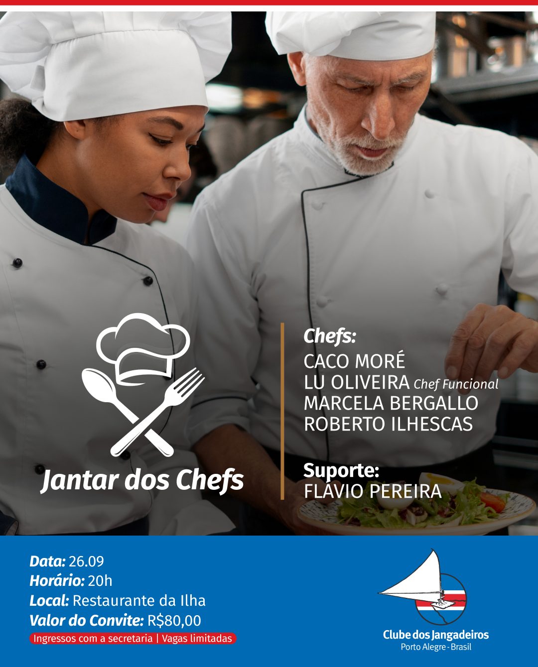 Nesta sexta-feira (26), às 20h, o Restaurante da Ilha será palco do Jantar dos Chefs, um tradicional evento no Janga que teve seus ingressos esgotados. Neste formato, os associados serão os Chefs da noite em um momento de integração que promete uma experiência gastronômica especial.