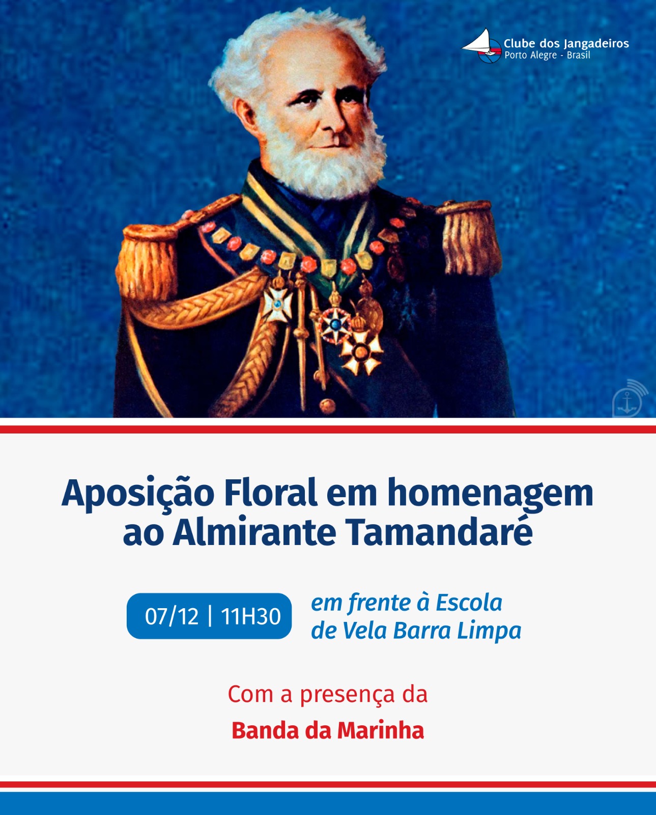 Como parte da programação de aniversário do Clube, faremos uma cerimônia especial no domingo (7), às 11h30, em frente à Escola de Vela, com a presença da Banda da Marinha.