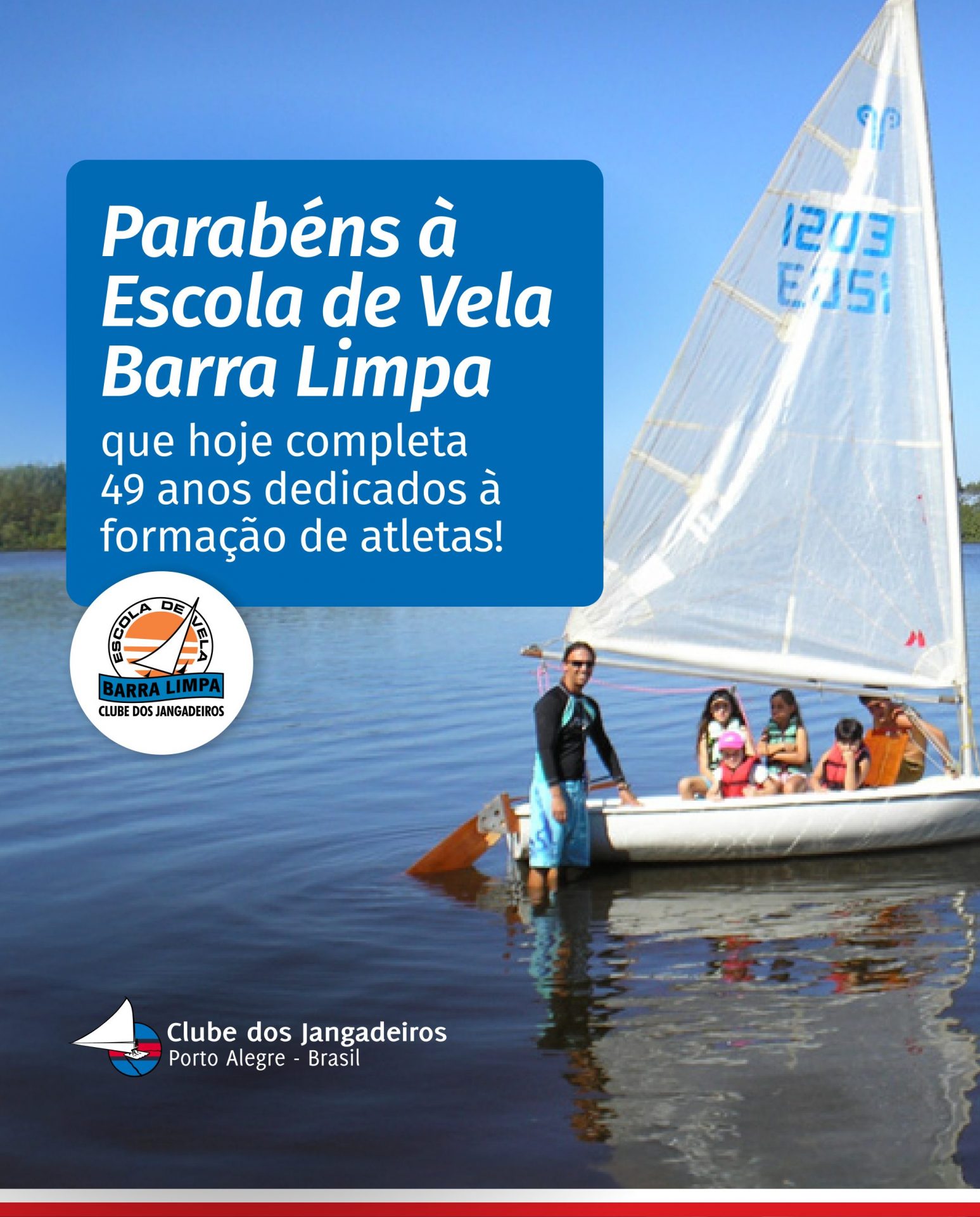 A Escola de Vela Barra Limpa comemora 49 anos nesta sexta-feira (13). No domingo (15), haverá uma programação especial, com regatas de OP disputando o Troféu Barra Limpa. Além disso, no fim do dia, está prevista uma confraternização com alunos e sócios do clube. Para mais informações, entre em contato pelo WhatsApp 51 3094 5770.