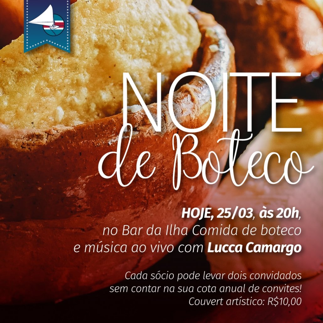 Nesta sexta-feira, 25 de março, acontece a Noite de Boteco no Clube dos Jangadeiros. O evento será realizado no Bar da Ilha com a cobrança de couvert no valor de R$ 10,00 com cardápio de boteco, a partir das 20h. Cada sócio pode levar dois convidados sem contar na sua cota anual de convites.