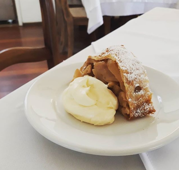 O Restaurante Pimenta Rosa, no continente, possui uma das receitas mais tradicionais no clube: o Apfelstrudel.