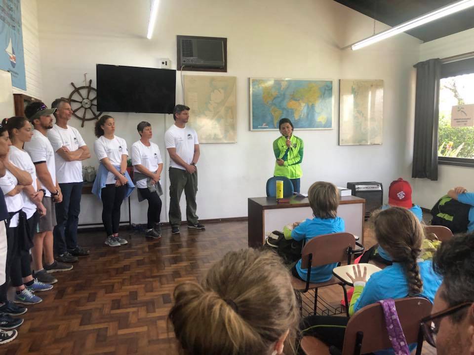 O professor Lucas Mazim, bicampeão brasileiro de Snipe, iniciou o treinamento com as apresentações, brincadeiras lúdicas e prometeu um passeio pelo Guaíba.