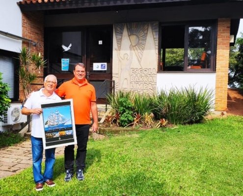 Comitiva do Clube dos Jangadeiros visita Navio-Veleiro Cisne Branco, em Porto Alegre