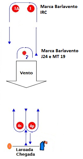 Para a classe Microtoner, , será colocada uma boia triangular laranja intermediaria, sinalizando que o percurso de contravento será menor para esta classe.